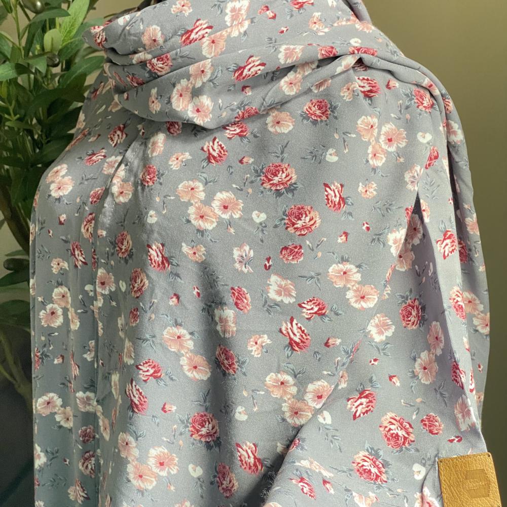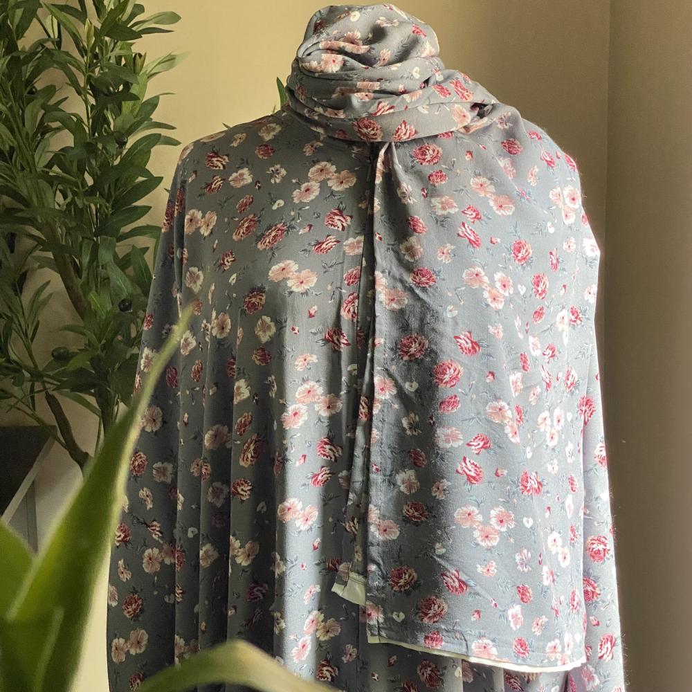 شرشف صلاة سحاب بكم متعدد المطاط مع كلوش بسيط باللون الرمادي المورد مع طرف أبيض