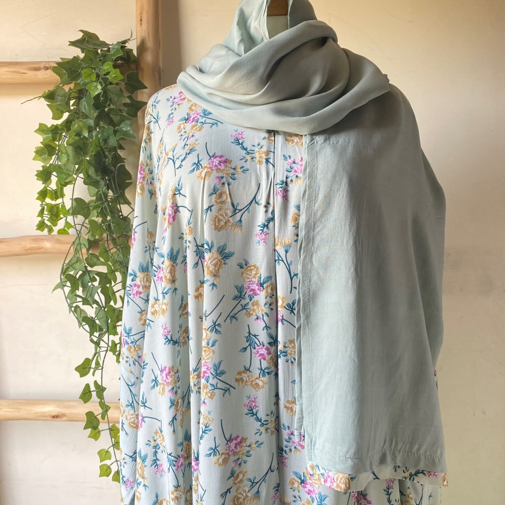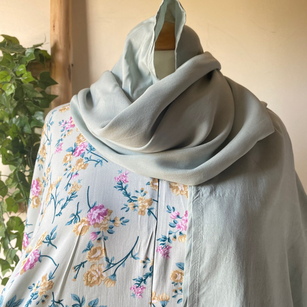 شرشف صلاة سحاب بكم مطاط باللون التيفاني المشجر مع طرحة باللون التيفاني السادة